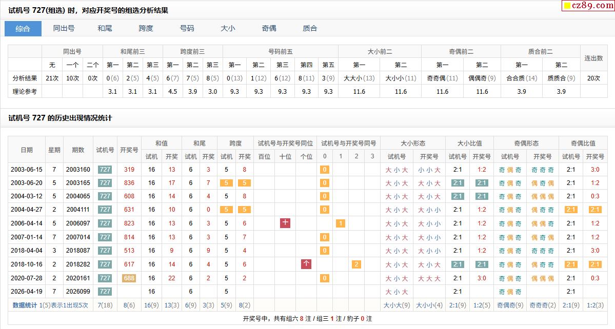 099期福彩3D试机号727对应开奖号的组选分析结果-3D开机号_福彩3d开机号_中彩网3d开机号_3D开机号查询_福彩网
