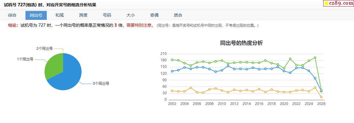 > 099期福彩3D试机号727对应开奖号的组选分析结果